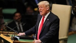 رئیسجمهوری آمریکا سخنرانی خود را در مجمع عمومی سازمان ملل آغاز کرد و گفت: «کارنامه رژیم خودکامه ایران، مرگ و ترور است. رهبران ایران در تنور جنگ سوریه و یمن میدمند».