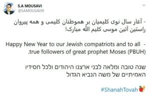 عباس موسوی، سخنگوی وزارت خارجه ایران نیز در حساب توییتری خود پیام شادباشی انتشار داد و در آن نوشت: «آغاز سال نو کلیمیان بر هموطنان کلیمی و همه پیروان راستین آئین موسی کلیم الله، مبارک!».
