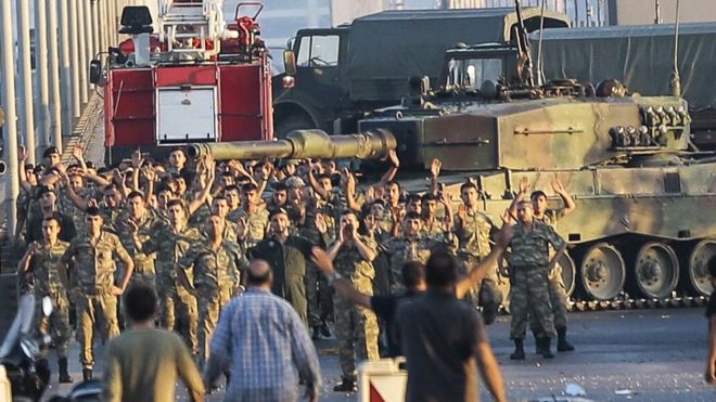 پس از کودتا، دولت ترکیه پنجاه هزار تن از مخالفان خود را با اتهام وابستگی و حمایت از کودتا، بازداشت و ۱۵۰ هزار تن از نیروهای دولتی را، اخراج کرده است.