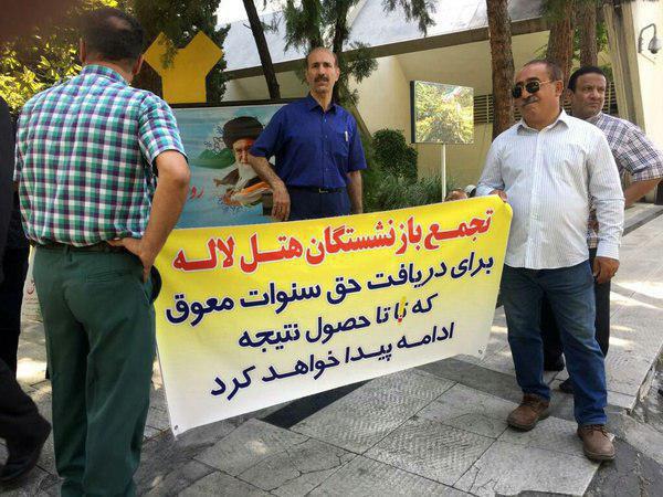 صبح امروز، شماری از کارگران بازنشسته هتل لاله تهران در اعتراض به عدم پرداخت مطالبات سنواتی خود، مقابل ساختمان هتل، تجمع اعتراضی برگزار کردند.