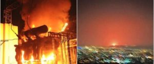 تلویزیون دولتی ایران، در یک اقدام ناشیانه برای انتشار مطالب دروغین در این زمینه، و به اشتباه انداختن مردم و جهان، گزارشی پخش کرد که گزارشگر در کنار چند کپسول بزرگ گاز ایستاده و یک فرد یونیفورم پوش به او توضیح می دهد که آتش سوزی و انفجار در یکی از این کپسول ها رخ داده است. تلویزیون حکومتی، یک تصویر نزدیک نیز از حفره ای که در نتیجه انفجار، ظاهرا روی یکی از این کپسول ها ایجاد شده نشان داد و آن را محل انفجار معرفی کرد.