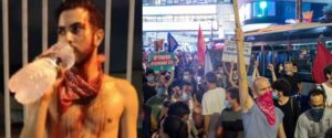 در جریان تظاهرات دو شب پیش، شماری از طرفداران نتانیاهو با چوبدست و پنجه بکس و افشانه فلفل، به جوانانی که علیه نتانیاهو شعار می دادند حمله بردند و آن ها را مضروب کردند. تظاهرکنندگان می گویند که با فریاد از پلیس کمک می خواستند، ولی هیچیک از ماموران به کمک آن ها نیامد.