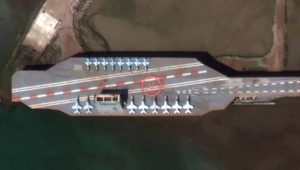 دیلی میل نوشت: که نیمی از ماکت ناو هواپیمابر شامل “عرشه استقرار هواپیماها” زیر آب رفته و بقیه آن روی آب قابل مشاهده است اما مشخص نکرده است که آیا ماکت تثبیت شده یا در حال حرکت است.
