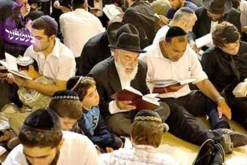 باورمندان یهودی در روز تیشعا به آو، روی خاک می نشینند و در سوگ ویرانی بیت المقدس نوحه سرایی می کنند