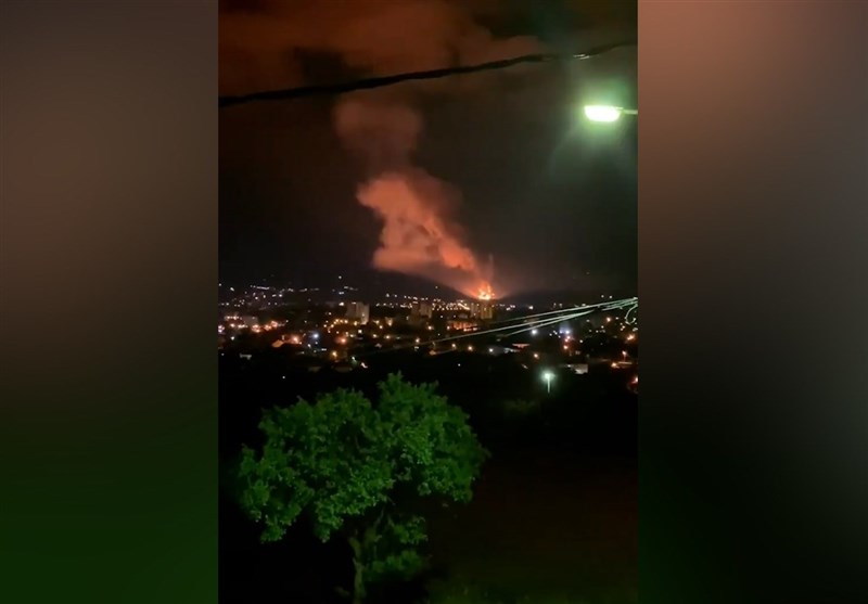 ویدئوهایی که در شبکه های اجتماعی به اشتراک گذاشته شده نشان می دهد که در میان انفجارهای مداوم از گلوله های مهمات ، شعله های آتشین شب را روشن می کند.