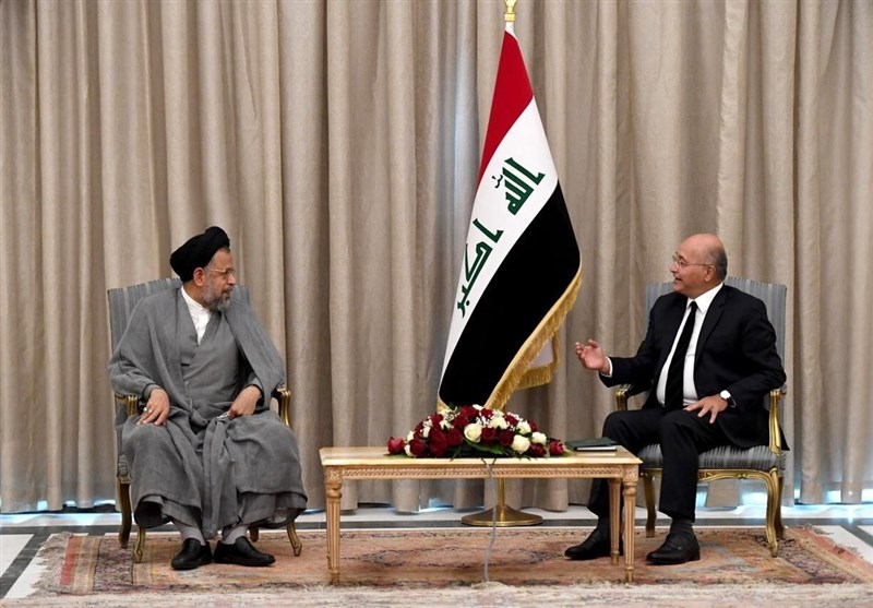محمود علوی ، وزیر اطلاعات ایران ، برای انتقال حمایت آیت الله سید علی خامنه ای رهبر انقلاب اسلامی از امنیت و ثبات کشور عربی ، با رئیس جمهور برهم صالح دیدار کرد.