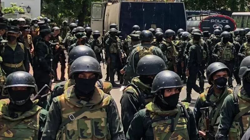 معترضان خشمگین مقررات وضعیت اضطراری را نادیده میگیرند. پلیس از گاز اشکآور و ماشینهای آب پاش برای مهار معترضان استفاده میکند. خبرنگار بیبیسی میگوید مردم از انتصاب آقای ویکرمسینگه به عنوان رئیسجمهور عصبانی هستند و نردههای امنیتی اطراف محوطه را پایین میکشند.